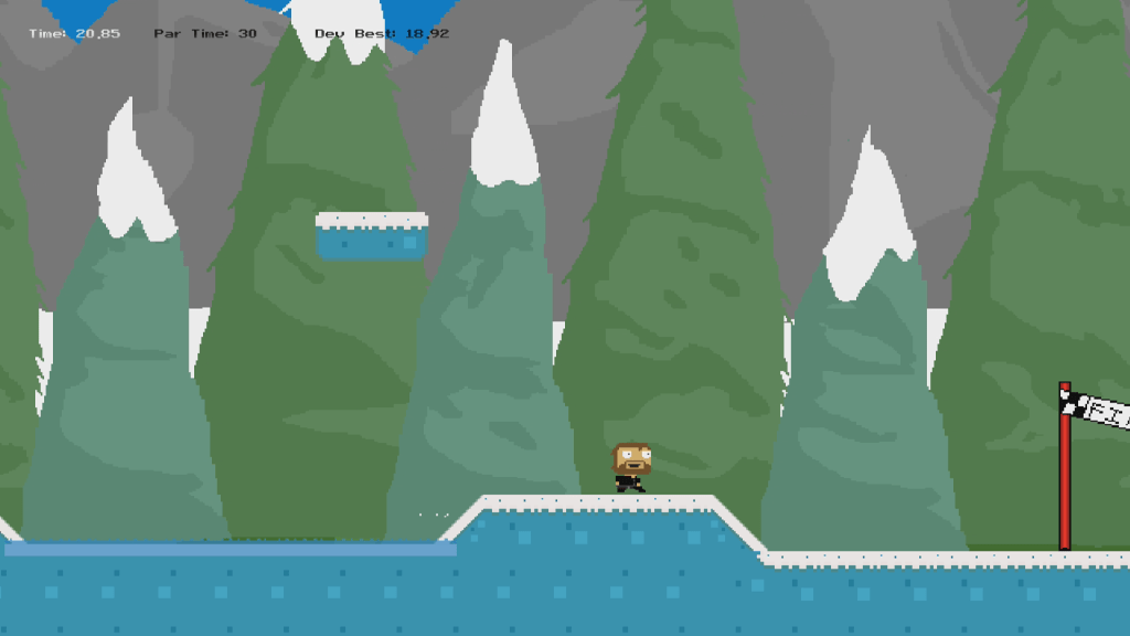 On Your Marks is a platformer with no enemies or deadly obstacles. Instead the challenge is derived from the act of platforming, mastering the simple mechanics to overcome the obstacles and reach the end of each level. Fast completion times is its own reward, and this becomes crucial during the final race.